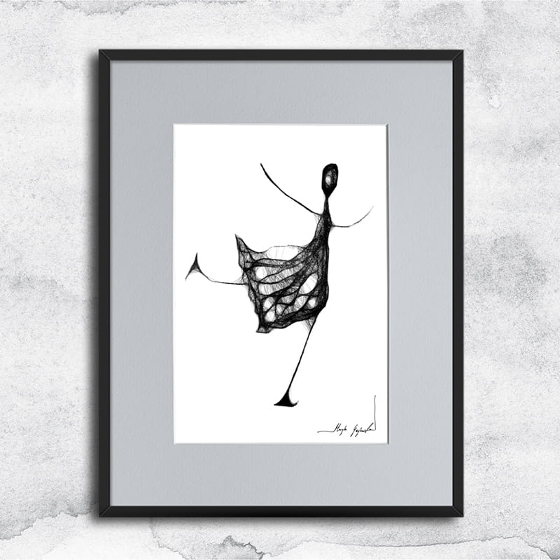Gerahmte Grafik in Mischtechnik (Giclée + Isographie Zeichnung) auf weißer, matter, leicht strukturierter Oberfläche, 160-250g Canson Grafikpapier. Die einzigartige Linie sieht sehr beeindruckend aus und Schwarz-Weiß-Grafiken passen perfekt in leere Wände moderner, minimalistischer oder Loft-Interieurs.