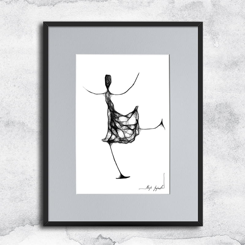 Gerahmte Grafik in Mischtechnik (Giclée + Isographie Zeichnung) auf weißer, matter, leicht strukturierter Oberfläche, 160-250g Canson Grafikpapier. Die einzigartige Linie sieht sehr beeindruckend aus und Schwarz-Weiß-Grafiken passen perfekt in leere Wände moderner, minimalistischer oder Loft-Interieurs.