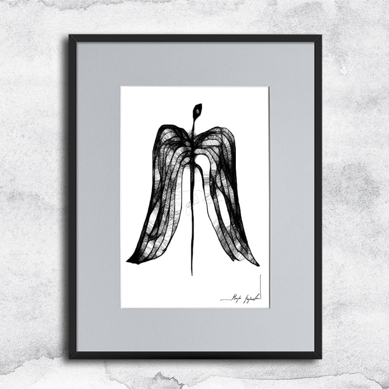 Gerahmte Grafik in Mischtechnik (Giclée + Isographie Zeichnung) auf weißer, matter, leicht strukturierter Oberfläche, 160-250g Canson Grafikpapier. Die einzigartige Linie sieht sehr beeindruckend aus und Schwarz-Weiß-Grafiken passen perfekt in leere Wände moderner, minimalistischer oder Loft-Interieurs.