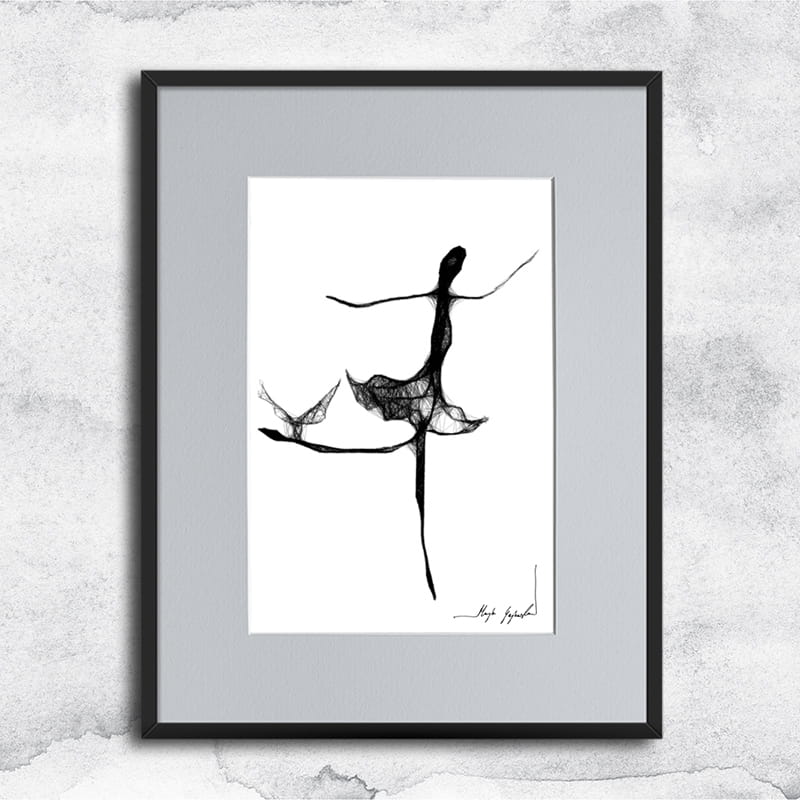Gerahmte Grafik in Mischtechnik (Giclée + Isographie Zeichnung) auf weißer, matter, leicht strukturierter Oberfläche, 160-250g Canson Grafikpapier. Die einzigartige Linie sieht sehr beeindruckend aus und Schwarz-Weiß-Grafiken passen perfekt in leere Wände moderner, minimalistischer oder Loft-Interieurs.