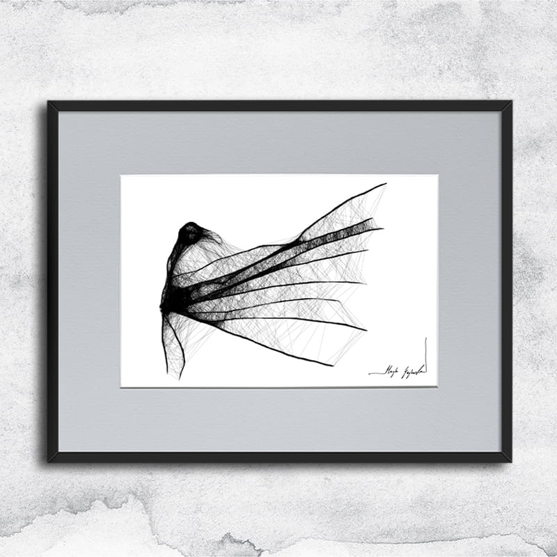 Gerahmte Grafik in Mischtechnik (Giclée + Isographie Zeichnung) auf weißer, matter, leicht strukturierter Oberfläche, 160-250g Canson Grafikpapier. Die einzigartige Linie sieht sehr beeindruckend aus und Schwarz-Weiß-Grafiken passen perfekt in leere Wände moderner, minimalistischer oder Loft-Interieurs.