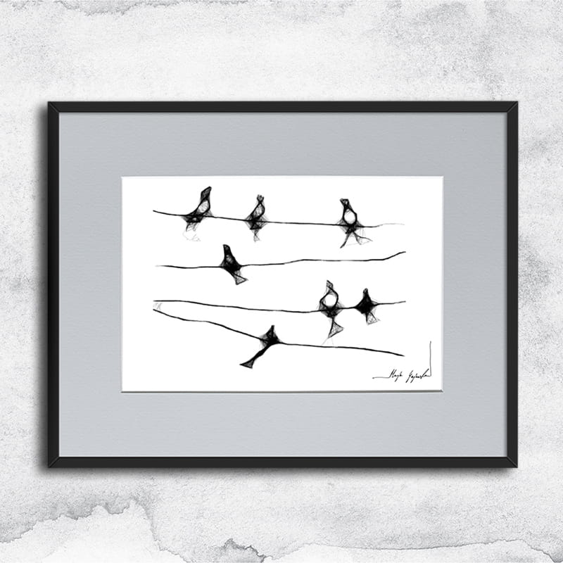 Gerahmte Grafik in Mischtechnik (Giclée + Isographie Zeichnung) auf weißer, matter, leicht strukturierter Oberfläche, 160-250g Canson Grafikpapier. Die einzigartige Linie sieht sehr beeindruckend aus und Schwarz-Weiß-Grafiken passen perfekt in leere Wände moderner, minimalistischer oder Loft-Interieurs.