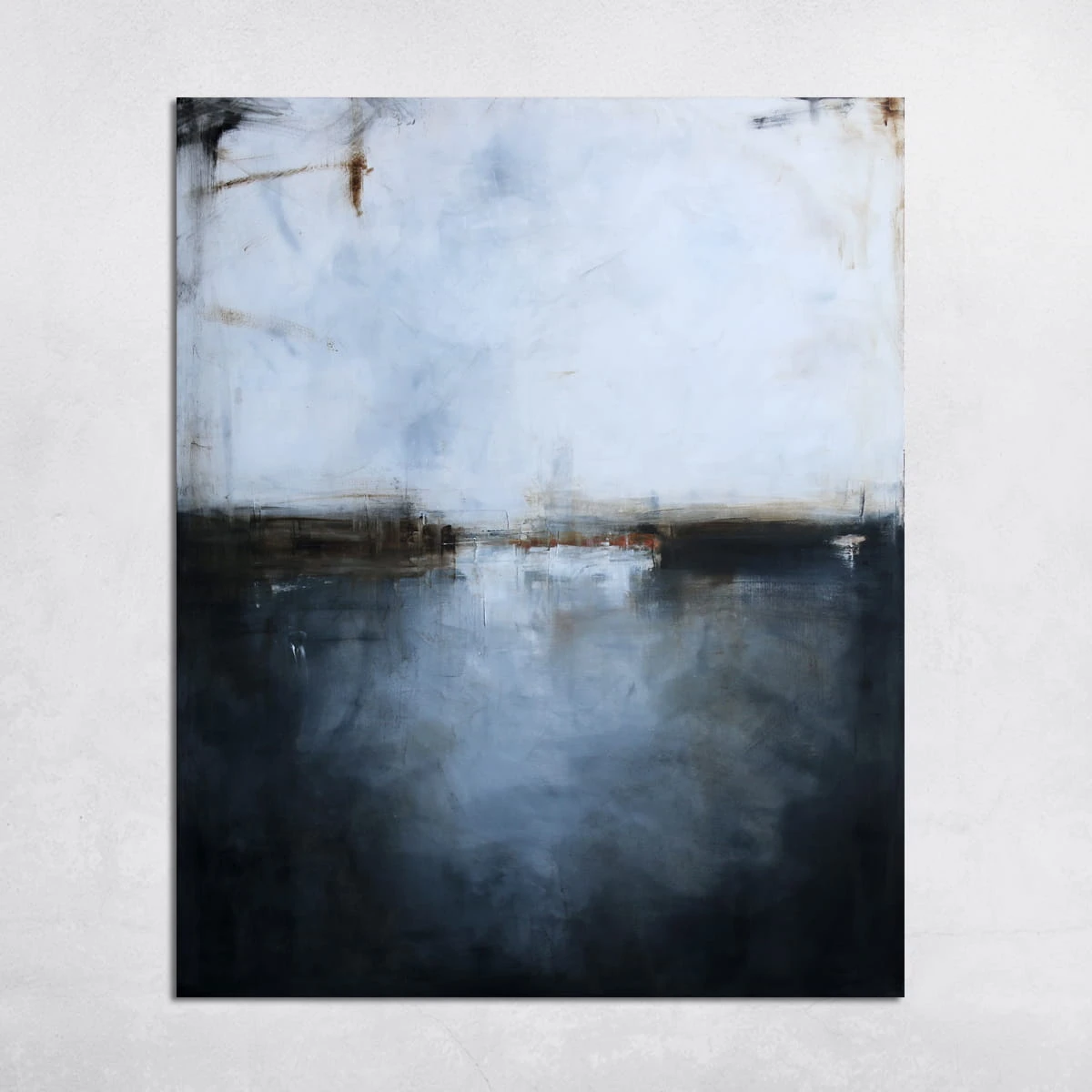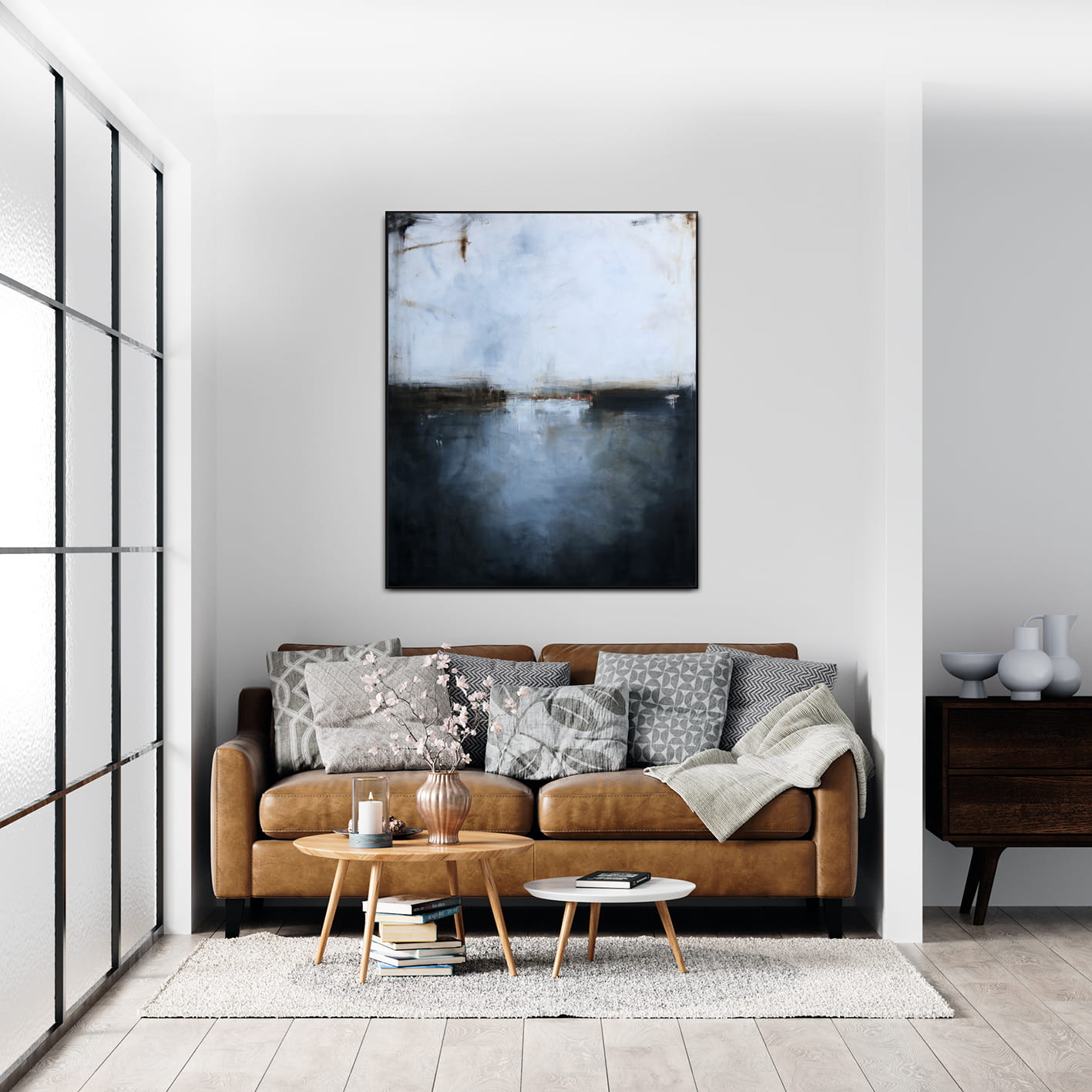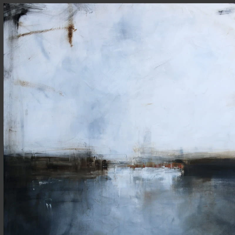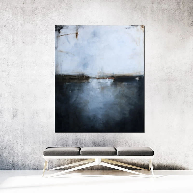 Ten minimalistyczny obraz, w którym dominuje biel i grafit, to wysublimowana gra kolorów, płaszczyzn i linii niekiedy zanikających, innym razem stawiających granicę. Subtelna kolorystyka i zredukowana kompozycja pozwoli na wkomponowanie się obrazu olejnego we współczesne wnętrza z dodatkami szarości czy elementami drewna.