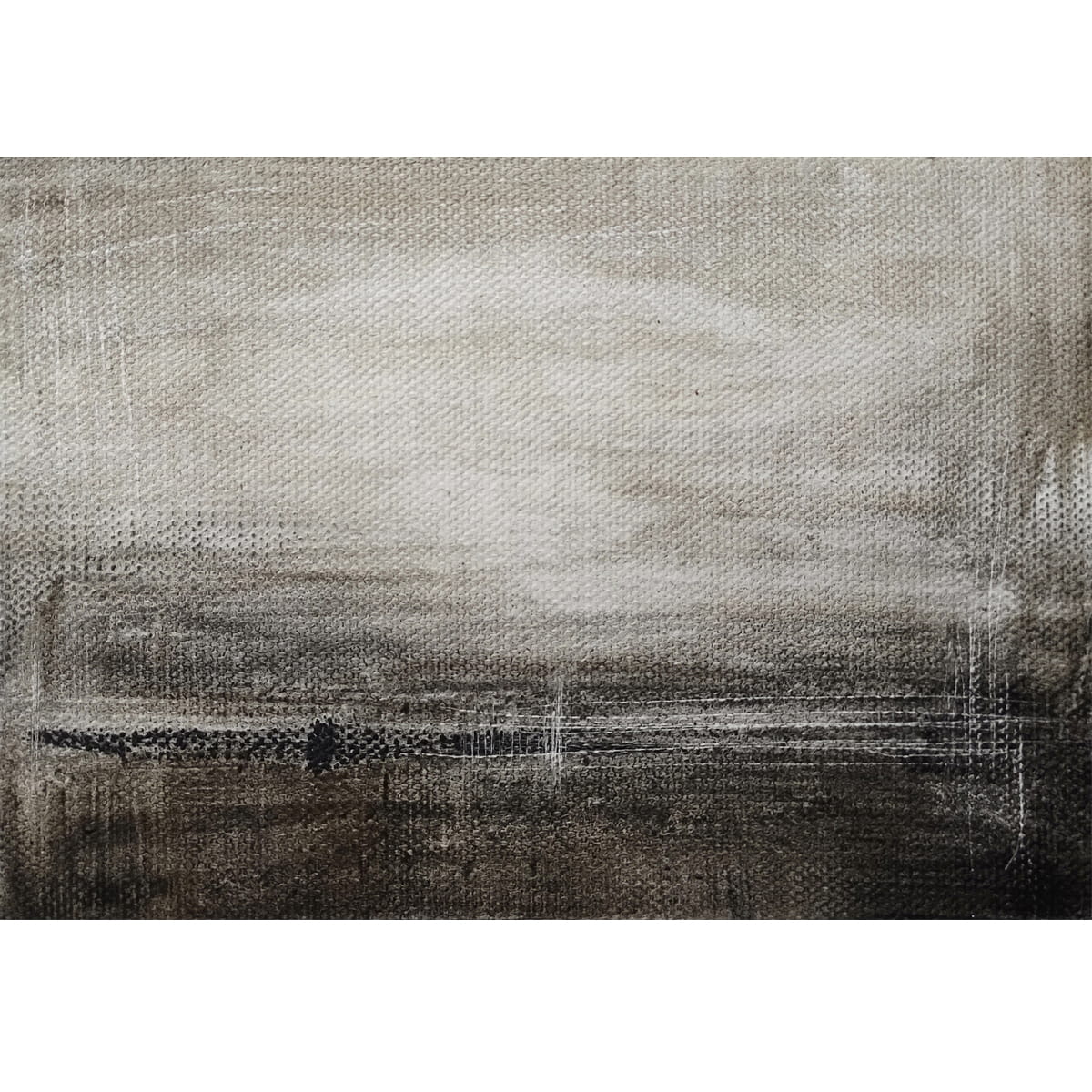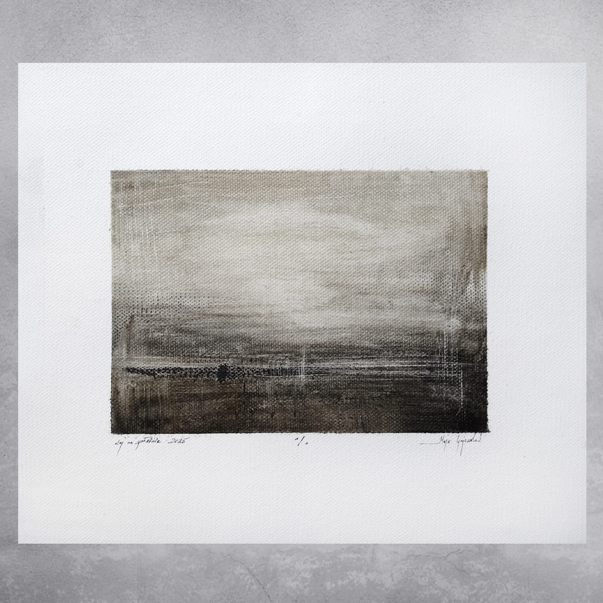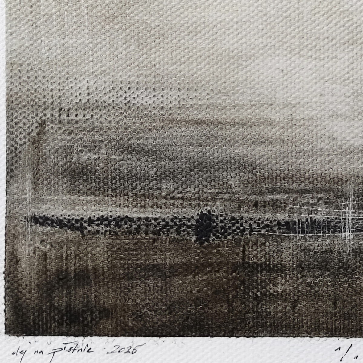 Obraz olejny w sepii wykonany na białym płótnie malarskim.